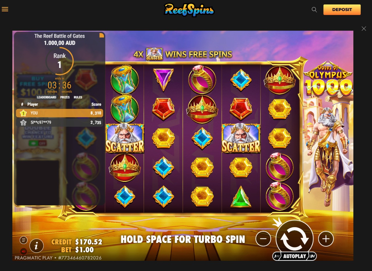Want to play against your friends? Reach out to the ReefSpins Community Manager to organise a 1-v-1 Reef Arena, exclusive to you!