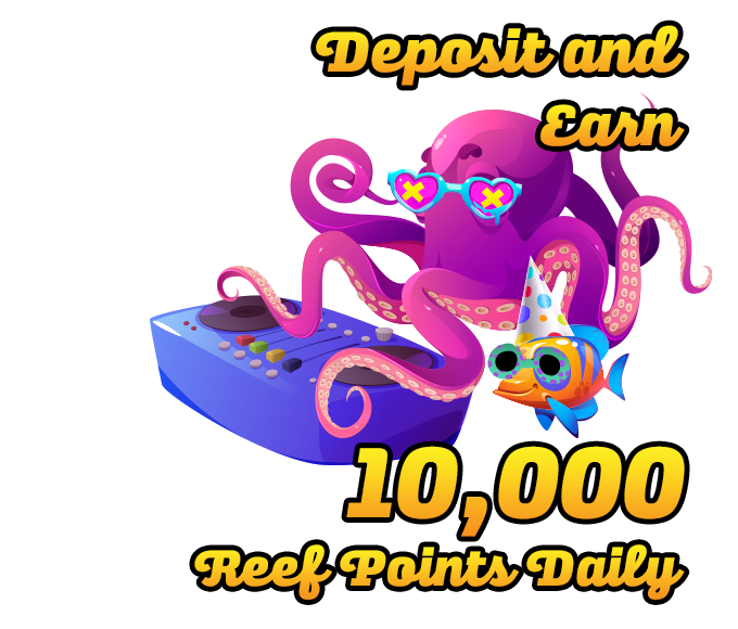 Login and deposit a minimum of $20 to get 10,000 Reef Points every day throughout August