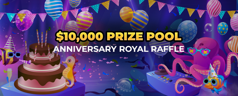 Win from a $10,000 REAL CASH prize pool in our Anniversary Royal Reef Raffle!
